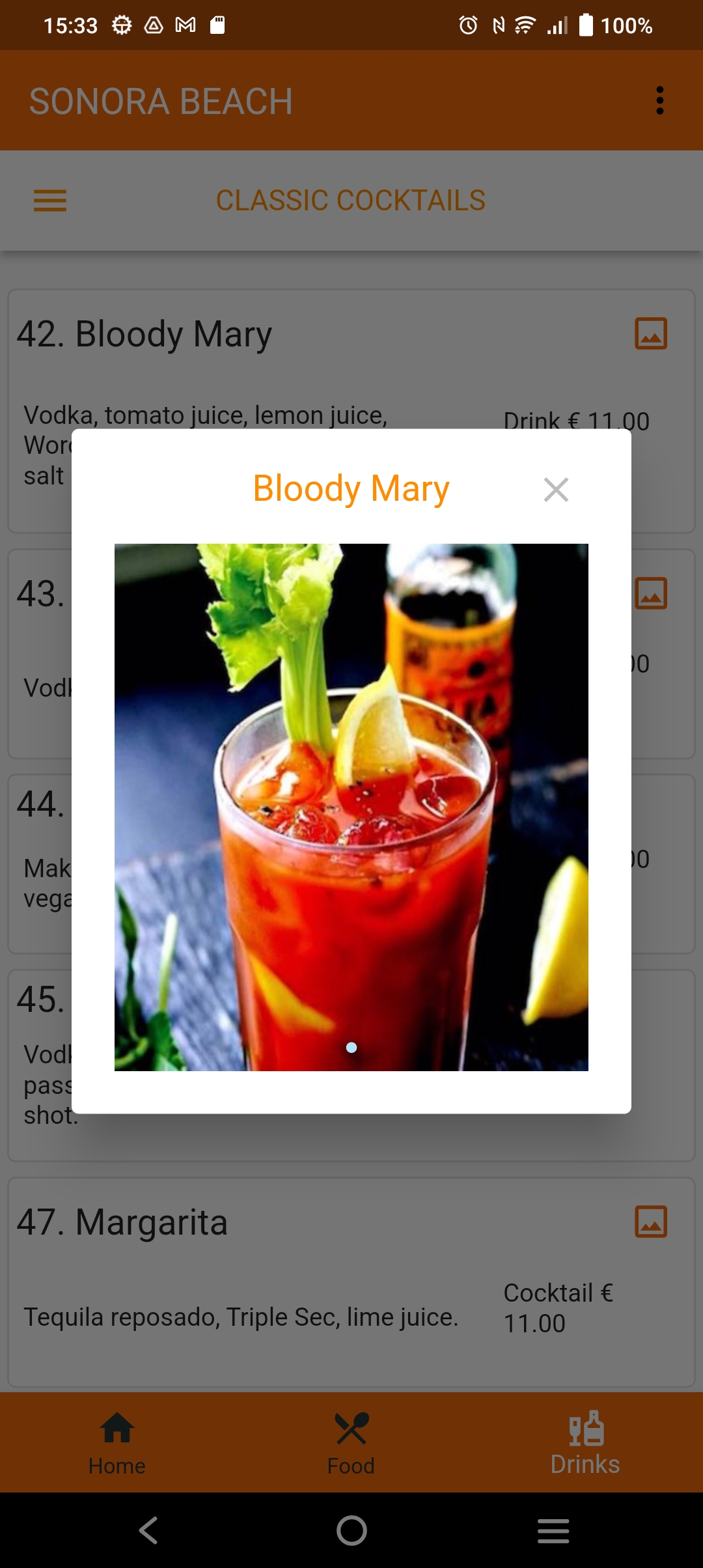 All of your food/drinks or events items can be shown in each language if you provide a translation. If no translation exists, the system will show a default (english) version of the description.